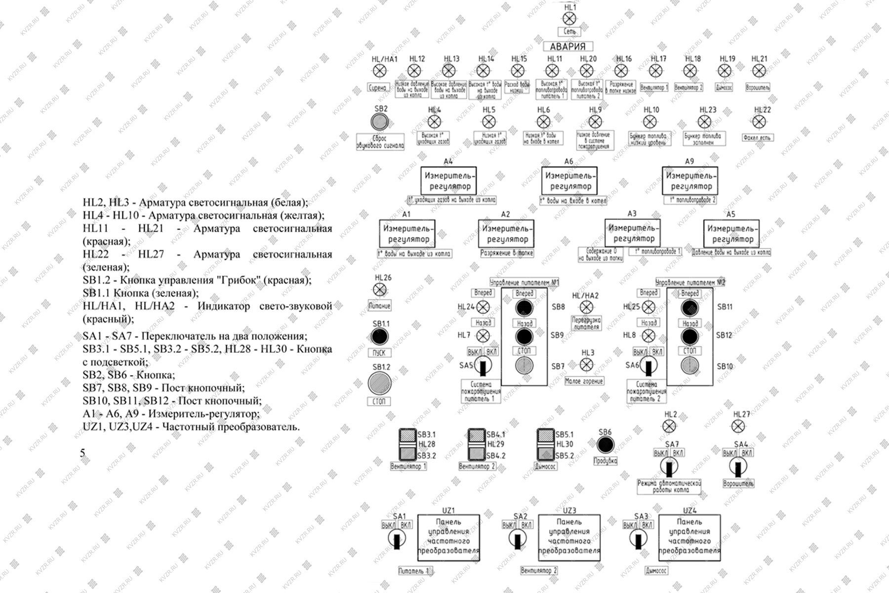 Функциональные возможности щита позволяют произвести ручной пуск и автоматическую остановку котла.